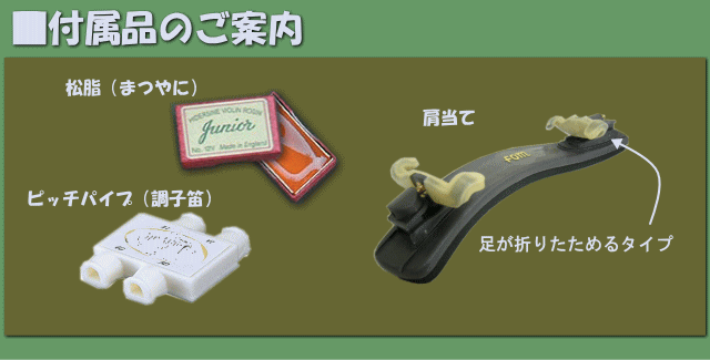 ■セット内容 本商品は、「バイオリン本体(VS-2)、ケース、弓、松脂、ピッチパイプ、肩当て」の6点がセットになっております。